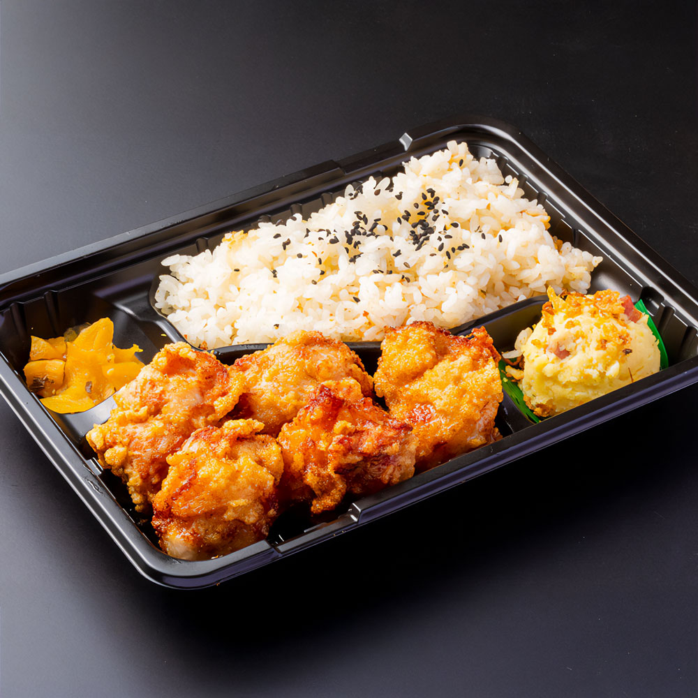 だしで炊いたご飯と燻製醤油でつけた唐揚げは絶品!マシマシはももから揚げ3個とご飯大盛りがお弁当にプラスされます。